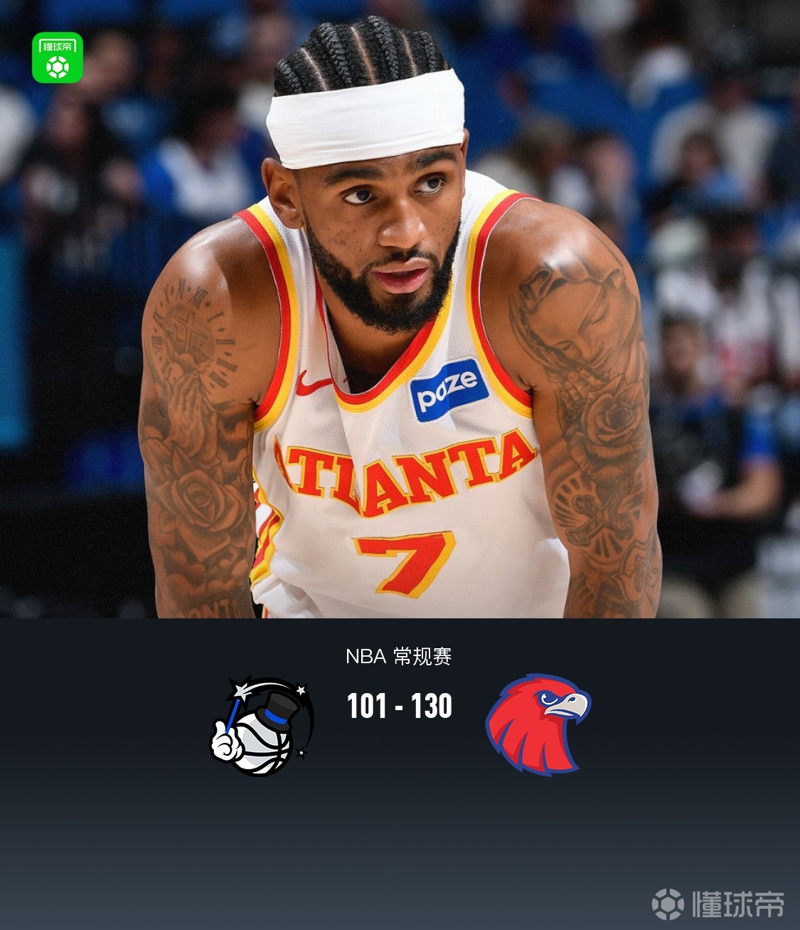 北京时间4月2日NBA 常规赛,奥兰多魔术对阵亚特兰大老鹰。半场魔术54-72老鹰,最终魔术101-130老鹰。